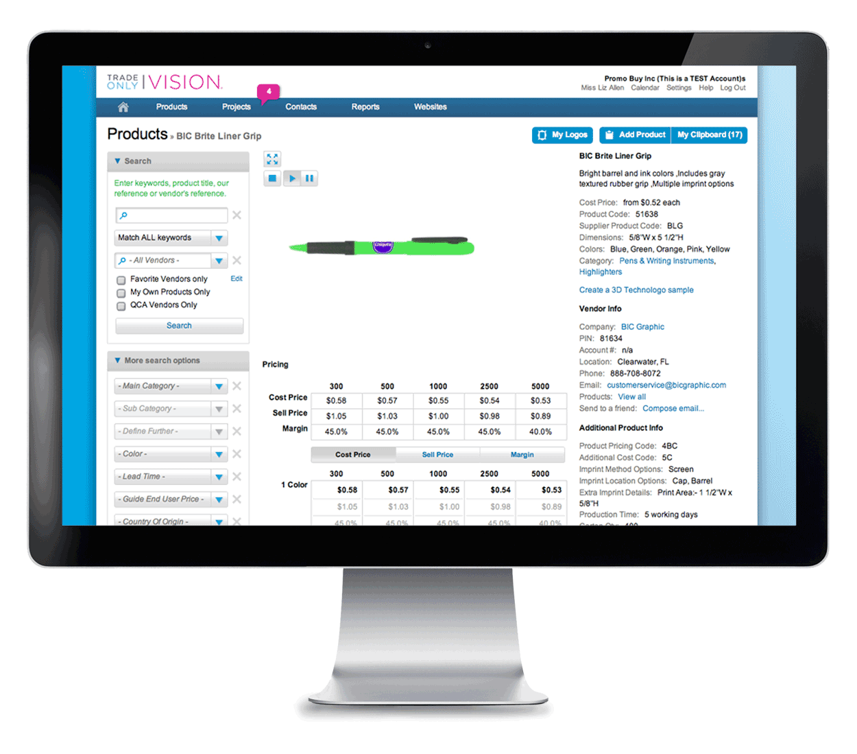 Thousands of 3-D enabled products are immediately available in VISION and STORE, including ranges from Top 50 Suppliers such as Hit Promotional Products, Sanford Business-to-Business, Leed’s, Gemline, Bullet, Prime Line and many more.