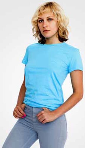 The Fine Jersey Short Sleeve T from American Apparel is ultra soft and smooth. It is made from 100 percent fine jersey cotton which provides a great surface for embellishment. One of the most popular choices among women.