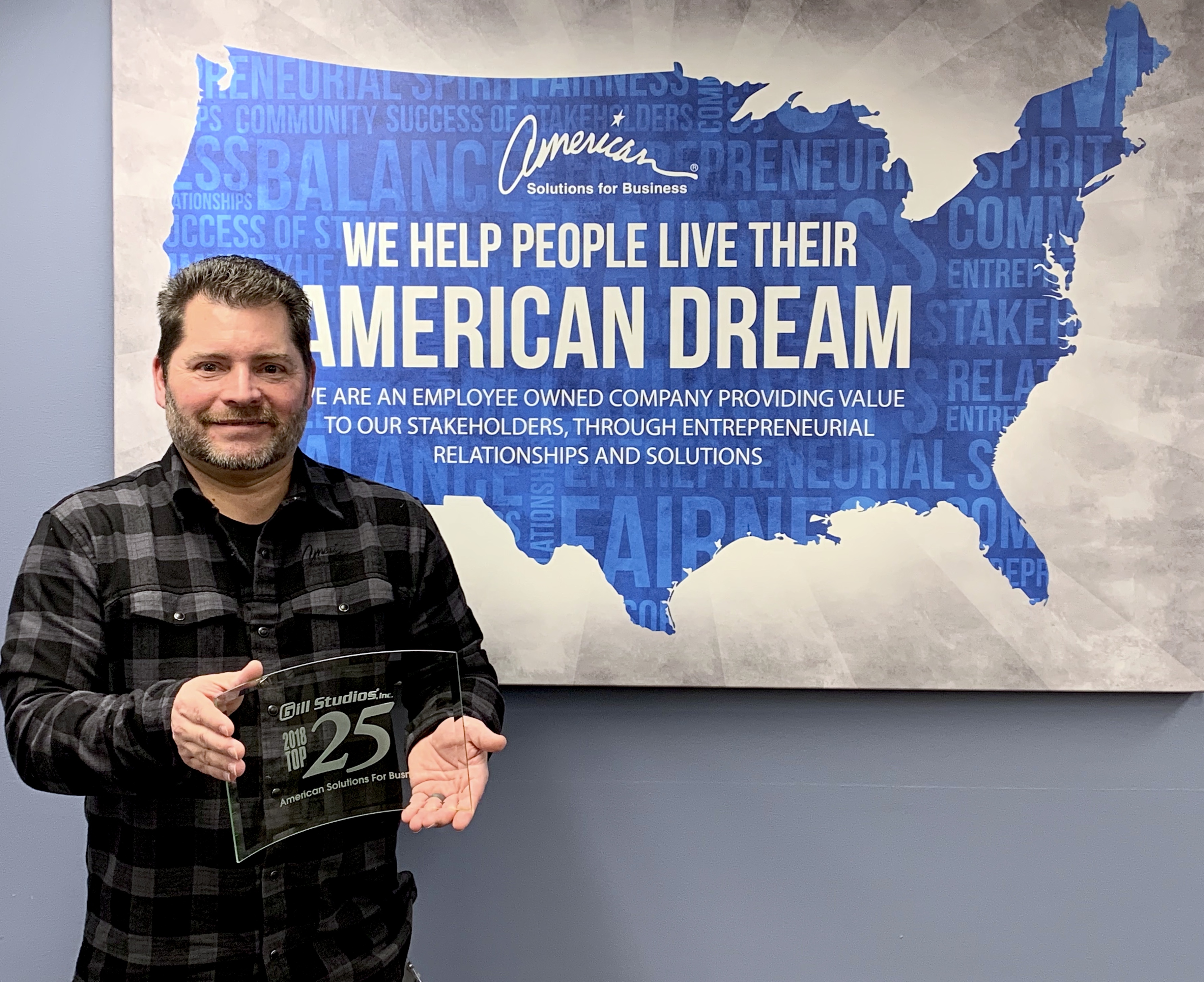 “We’re incredibly grateful for our partnership with Gill-Line,” said Dana Zezzo, vice president of marketing, vendor relations and events for American Solutions for Business. “Recognition like this is beginning to become a lost art—we appreciate this acknowledgement and will display this award proudly.”