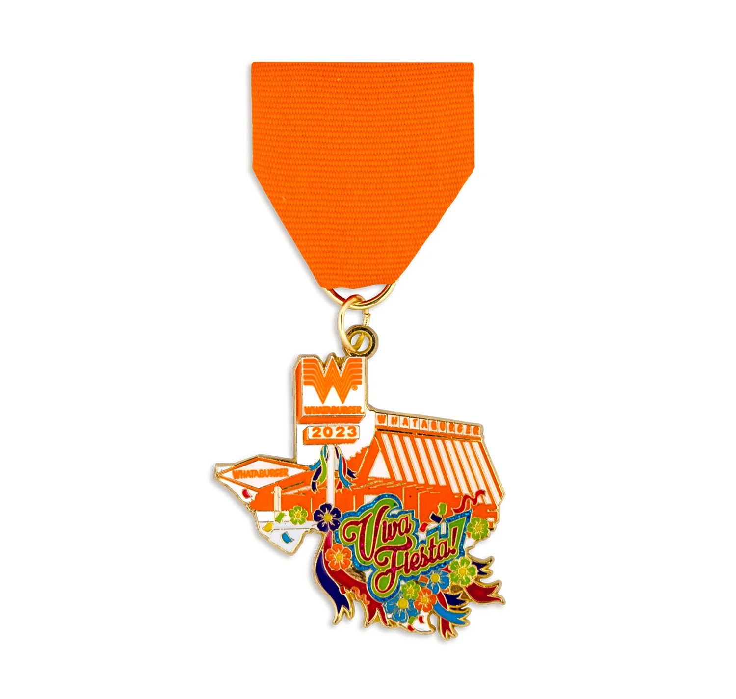 Right now, Whataburger has some really cool accessories, like a “2023 Fiesta Medal,” which looks like an honor that a president or other dignitary would bestow upon you, but really just celebrates the restaurant’s San Antonio roots. It’s cute!
