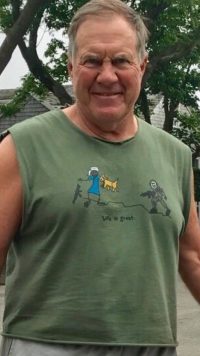 Belichick wore the cut-off garment Wednesday on Nantucket, with his smile looking to support its declaration that “Life is great.” Available at www.tridentk9.org, a site that former Navy SEAL and present Los Angeles-based deputy sheriff Jim Amann oversees, the item, according to the company’s website, looks to laud the downfall of terrorist Osama bin Laden. That understanding prompted praise for Belichick from the Boston Herald, whose Tom Shattuck dubbed him “a true patriot,” but acceptance has not proven universal, as Sean Newell, of Vice Sports, stated the decision to don the shirt was “Pretty weird. Some might even say offensive,” and a Twitter user said it reminds him “of that video of a police dog mauling a Black man.”