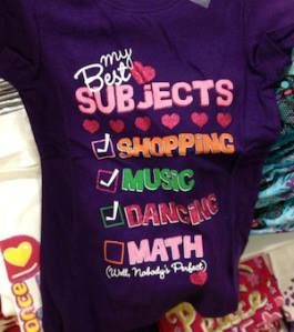 The controversy started when photos of the “My Best Subjects” tee as well as another with the imprint “Born to Wear Diamonds” appeared online. An article on Jezebel, one of the first sites to post the images, noted that the comparable boys’ shirts “paint the picture of a pro-active kid putting himself out there and making things happen” and accused the company of pushing negative stereotypes on young girls.