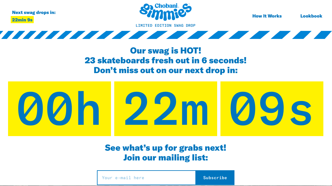 Guys, we have an urgent breaking news announcement: Yogurt is … cool now? That’s if Chobani’s latest promotion is any indication, at least. In support of Chobani Gimmies, its new product line for kids, the yogurt brand launched a multi-channel marketing campaign that centered on a branded merch giveaway. So far, it’s going great.