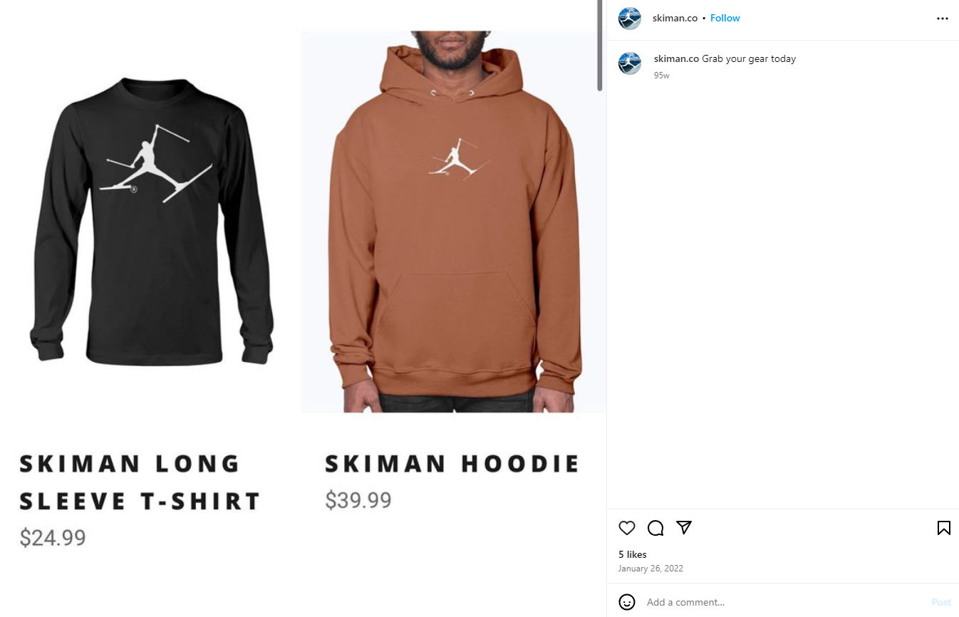 According to Denver7: “The letters claimed Skiman LLC’s logo was confusingly similar to Nike’s ‘Jumpman’ logo. One letter asked him to ‘voluntarily cancel’ his trademark. Another letter said Nike may pursue ‘any and all available legal prescriptions … to protect its valuable trademarks.’”