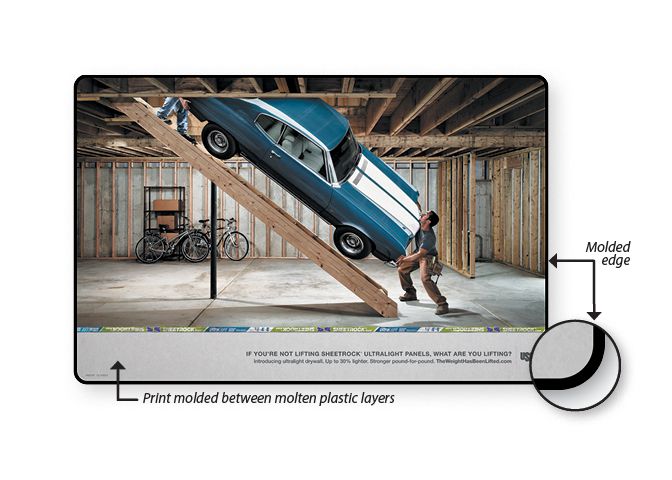 The exclusive sealed-edge construction molds a high-resolution print between two layers of molten plastic. The base material, either economy foam or DuraTec synthetic rubber, is literally fused to the bottom layer making a counter mat that is airtight, waterproof and almost indestructible.