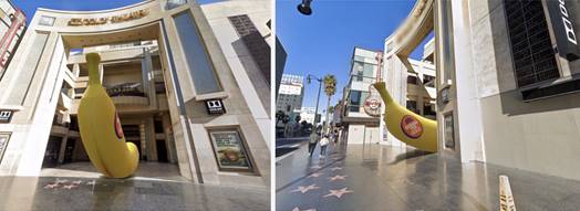 Dave & Buster’s, trying to make sure that we all understand just how huge their “Wow Wall” 40-foot TV screens are, took “banana for scale” to new levels by placing an equally large inflatable banana on Hollywood Boulevard.