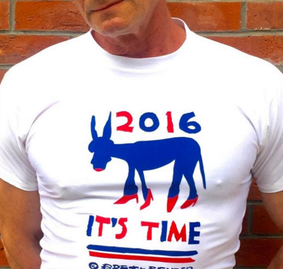 The most popular item, with 240 sold as of last week, has been the “It’s Time” shirt, designed by artist Brett Bender; followed by a Duke & Winston design, with about 230 sales.