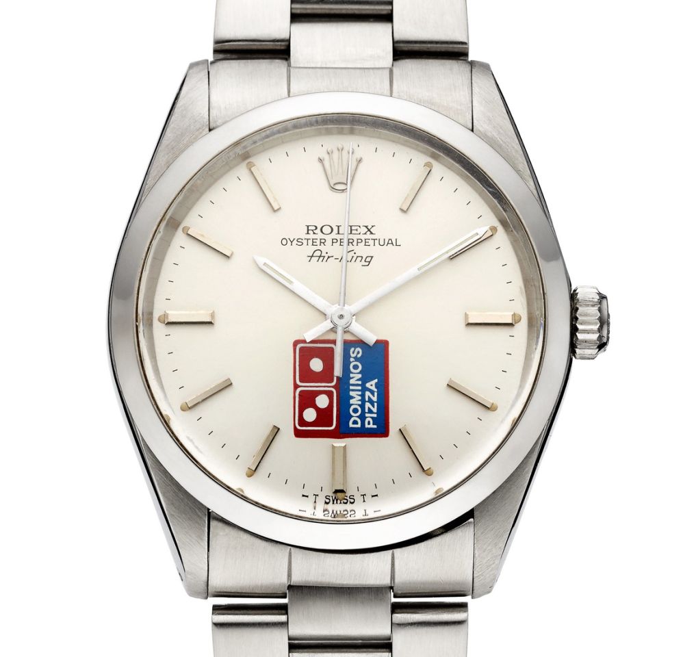 Two months after it knocked down its longtime competitor, Pizza Hut, to become the leading pizza chain domestically and internationally, Domino’s Pizza is again making headlines thanks to a practice that dates back 41 years. Come Tuesday, the massive moneymaker figures to help Christie’s fetch some dough, as the auction house will be accepting bids for a Rolex Air-King that bears the revered pizza chain’s tile logo.