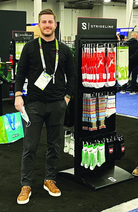 He adds that distributors shouldn’t stop with socks. Customized shoes are also popular these days among a variety of buying groups.