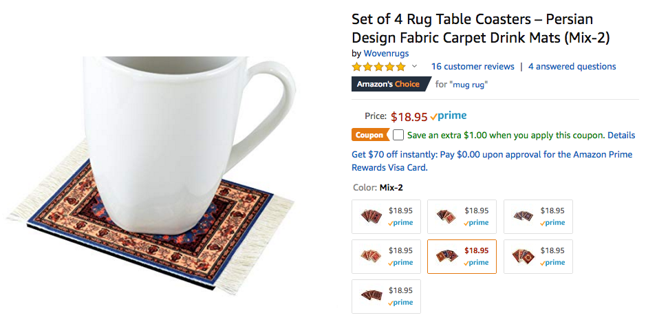 Check out this little coaster that looks like a rug. Isn’t it cute? It even has a fun little name: Mug Rugs!