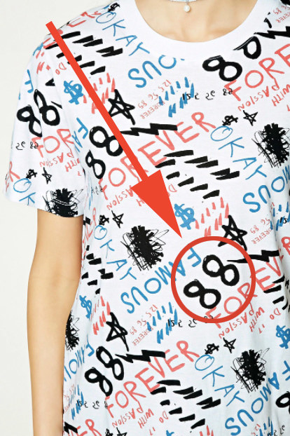 Who knows what creative process went into this T-shirt? It could have been an accident, but Forever 21 is not providing an alternate reason for the appearance of the double 8.