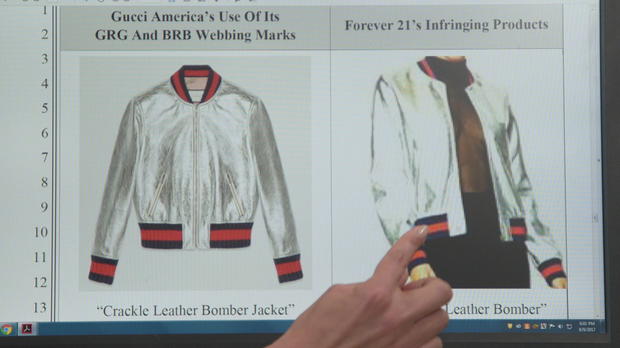 Scafidi pointed out a side-by-side image to CBS News, showing one of Gucci’s products compared to a Forever 21 jacket.