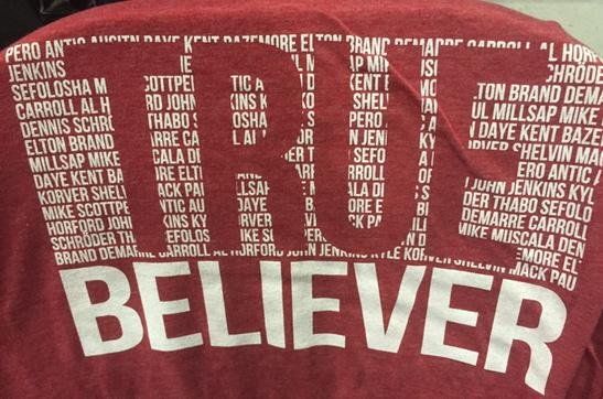 It’s not as if Teague hadn’t pulled his weight during the regular season, warranting his omission from the T-shirt. Teague led the team in assists and finished second in Atlanta in points, steals and free-throw attempts during the season. Some players are giving the T-shirt manufacturer the benefit of the doubt, claiming that Teague’s name is lost in the negative space spelling out “true believer.”