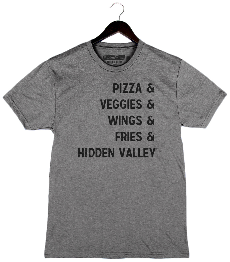 Thanks to a social media-driven sweepstakes through which participants could claim, among other prizes, a lifetime supply of Hidden Valley Ranch and a ranch resort getaway, loyal purchasers might reward Hidden Valley and Flavour Gallery for their partnership by not only dipping, dunking and drizzling, but also through perusing, purchasing and petitioning acquaintances to pick out a shirt or two. Here’s hoping those dips, dunks and drizzles stay off the threads.