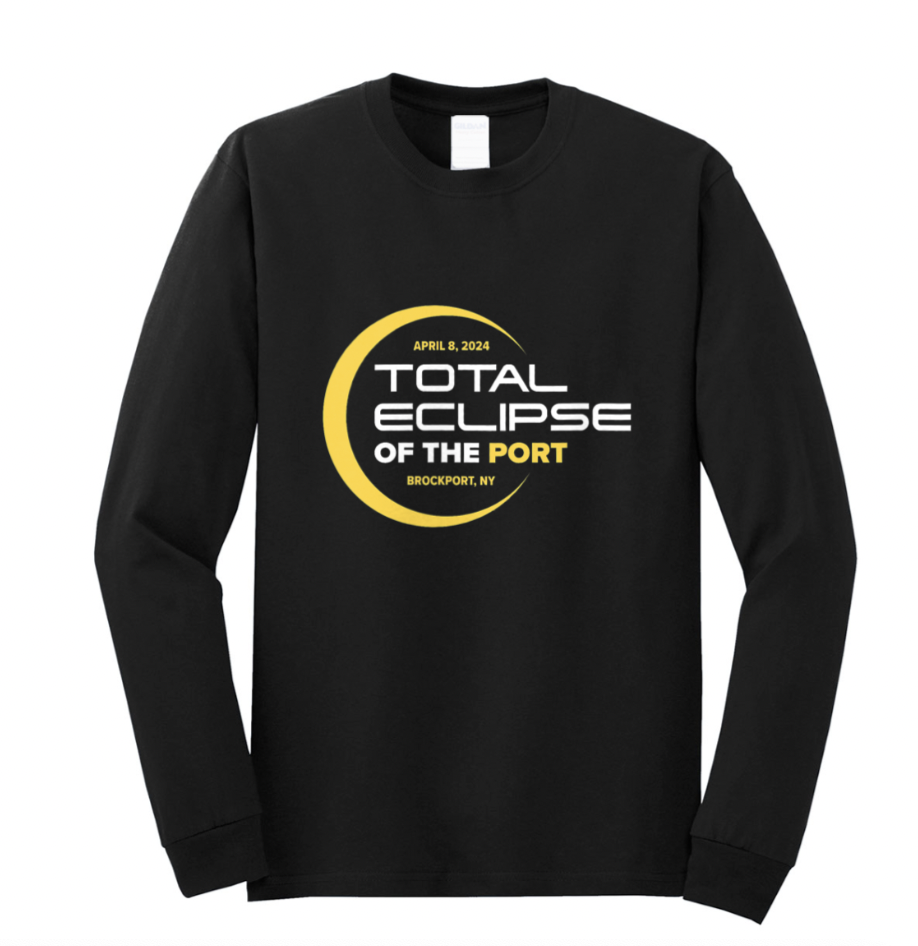 The local SUNY campus in nearby Brockport has its online store stocked with black, yellow, and white “Total Eclipse of the Port” merchandise. The store includes blankets, water bottles, mugs, sweatshirts, jackets, hats, and T-shirts.