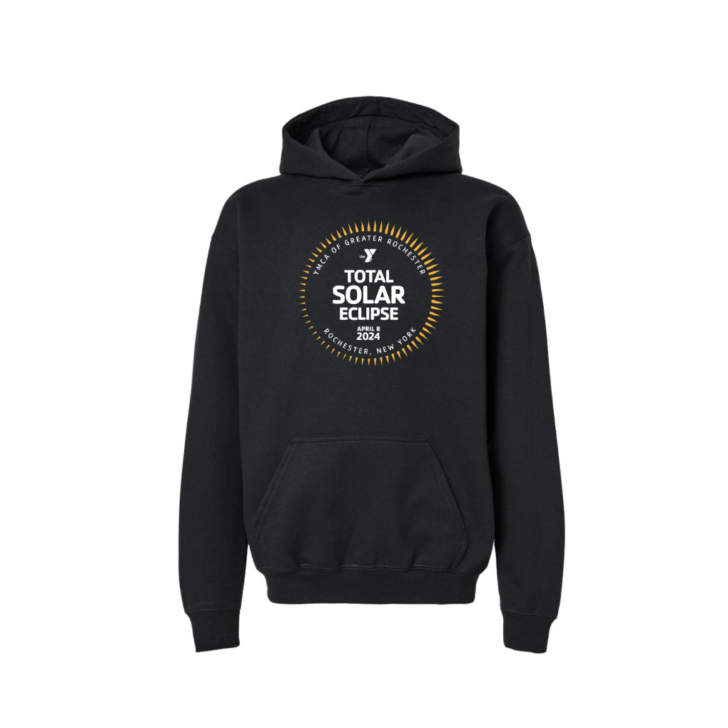 The local YMCA also released an apparel line, albeit a bit more limited than at SUNY Brockport. The merchandise line, which includes sweatshirts, T-shirts, hats, and tote bags, is all black with a logo depicting the eclipse and “Total Solar Eclipse” with the date, and the YMCA logo.
