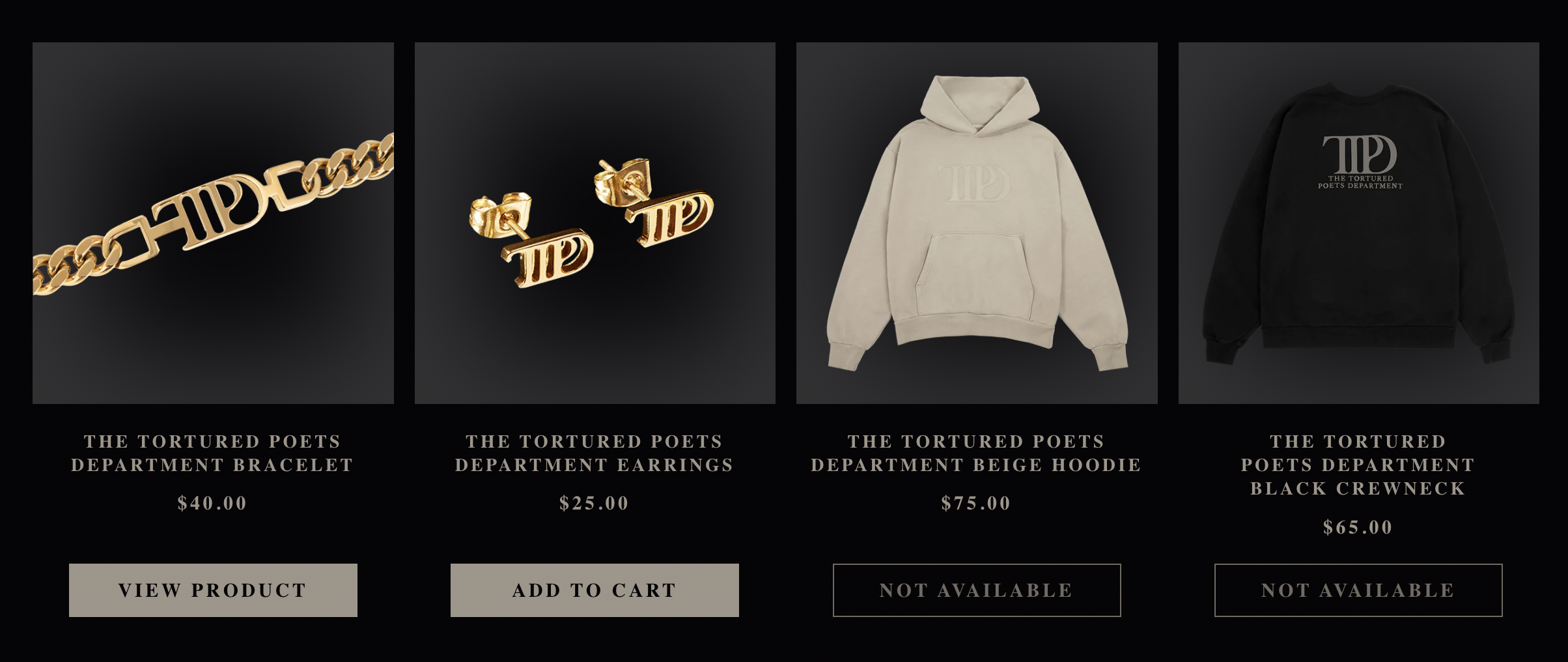 Oh, and, to no one’s surprise, all of the items except for the earrings and bracelet are sold out. We’re still waiting to hear if the products are of a better quality than “Eras” tour merchandise, which disappointed quite a few fans.