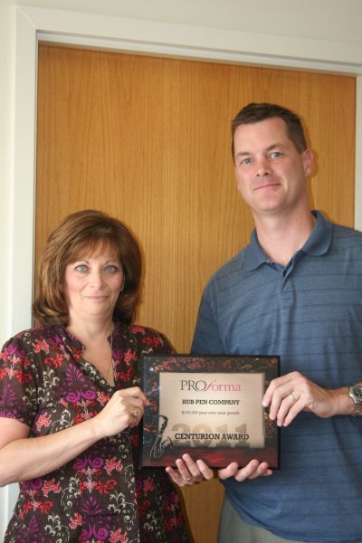 This is the second year the Centurion Award has been given and the first time for Hub Pen Company to be honored. The award was instituted to recognize Proforma PLPs for their significant contributions and to let Proforma owners know which partners are working hard to grow with the company.