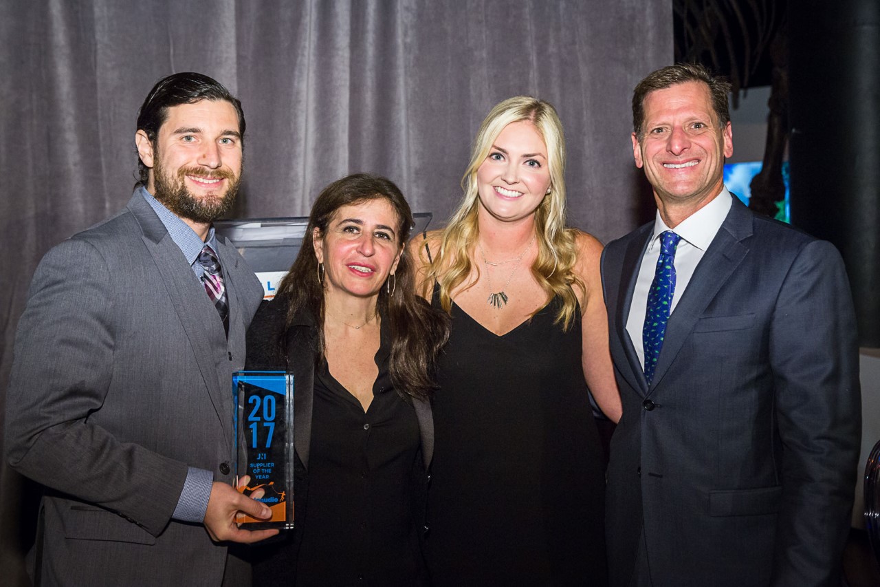 Debbie Abergel, JNI’s chief strategy officer, along with JNI’s CEO Craig Nadel, presented OrigAudio the award.