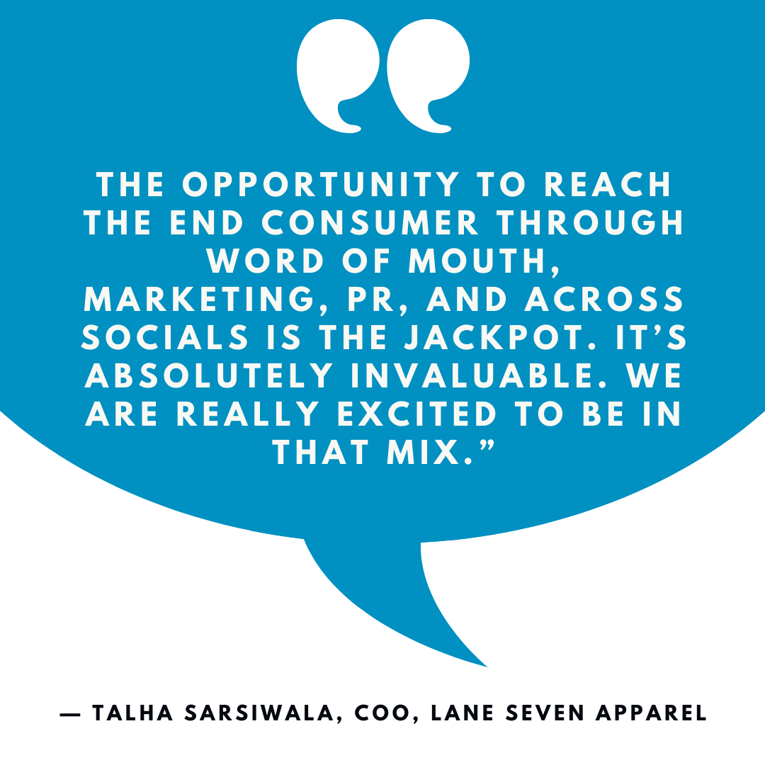 While expanding into DTC can require a lot logistically, Sarsiwala says it was merely plug-and-play for Lane Seven. Because its retail offerings are exclusively available online at shop.lanesevenapparel.com and it already had that infrastructure built with wholesale, it was a smooth transition.