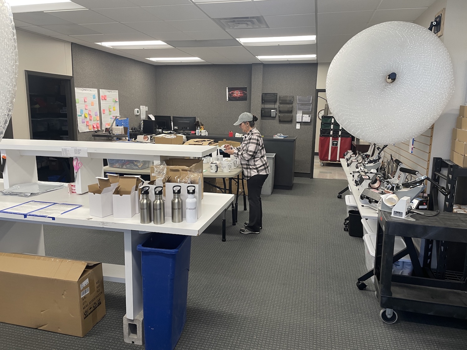 As things progressed and I started making more sales, I saw the potential in offering this service to others. Eventually, I launched Make Your Mark Design (MYMD) as a POD fulfillment center, offering services like printing, packaging, and shipping for other people’s POD businesses. It was exciting to see MYMD grow from just my wife and I to a staff of 10 employees and 3,500 square feet of production space. For a few years, business was good. Orders were steadily coming in, and while margins were tight, revenue kept pace with expenses.
