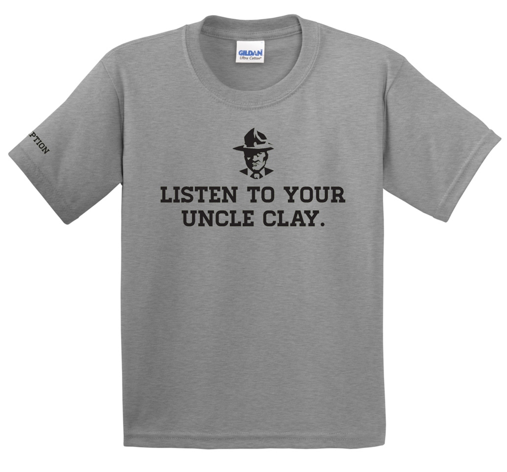 The “Listen to Your Uncle Clay” T-shirt; Image via captainhigginsgear.com