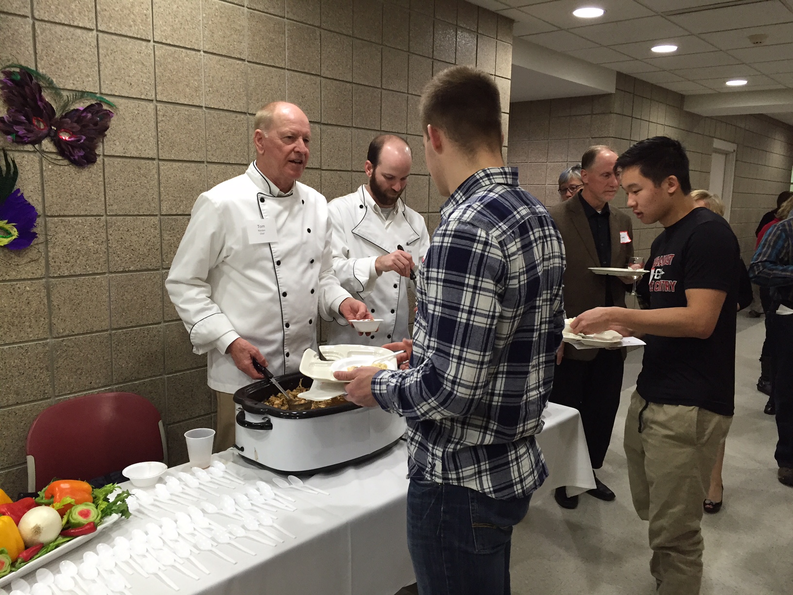 Tom and his son, Bob Riordan, who teaches philosophy at the university, served more than 300 bowls of spicy gumbo to generate student scholarships. An annual fundraising event, EATS is held on the first Saturday in March, and involves an evening of fine gourmet foods donated by local chefs at the University of Wisconsin Marathon campus.