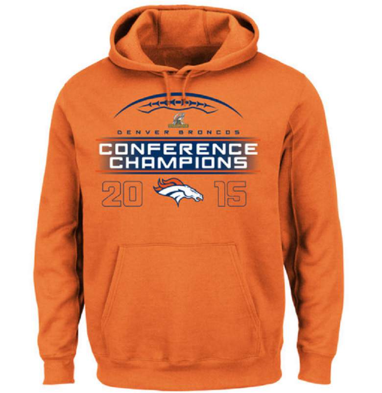 After the Broncos beat the New England Patriots, Mile High Stadium was flooded with orange and blue confetti, and Broncos quarterback Peyton Manning donned an AFC Championship cap. And fans can get their hands on caps, T-shirts and glassware.