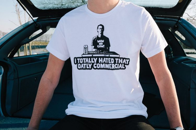 Did you hate that? Did you hate it enough to wear a T-shirt telling everybody how much you hated it? Oatly won’t be offended. In fact, it was kind of banking on that happening.