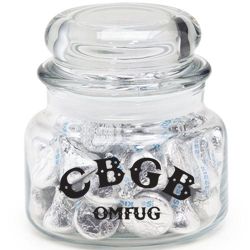 How do you make the CBGBs, the former dirtiest punk bar in New York, a little nicer? By filling it with Hershey Kisses (and maybe soap). The 11 oz. Round Glass Candy Jar from Mid-Nite Snax will warm the heart of even the most crass members of Crass. Click here for more information.