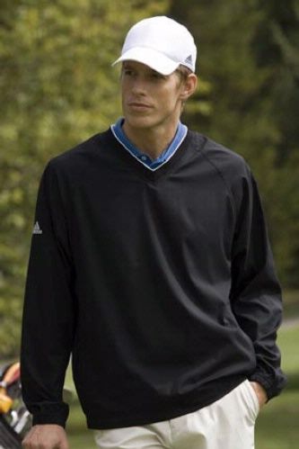 March winds and April showers bring forth golf season. Or something like that. Be prepared for the wind, rain or a round with the 100 percent polyester adidas ClimaProof Long Sleeve V-Neck Windshirt from Vantage Apparel. Click here for more information.
