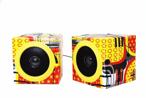 Cubed Folding Speakers from Source Abroad are great for mailers, trade show handouts and spontaneous rocking. The speakers fold flat for storage and pop up whenever you need a power E chord, which is all the time. Click here for more information.