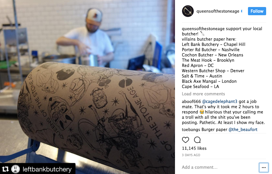 Select butcher shops in Chapel Hill, N.C.; Nashville, Tenn.; New Orleans; Brooklyn; Washington, D.C.; Denver; Austin; Los Angeles and London have been wrapping their products in paper with artwork inspired by the new album, Pitchfork reported.