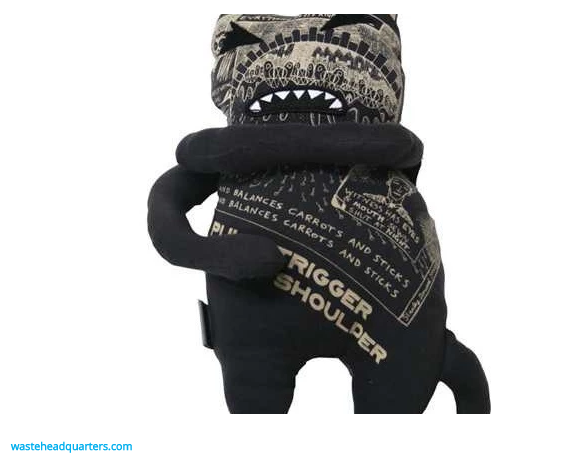 Why? Who knows? Radiohead always has done things its way. This stuffed creature features phrases, like “Right hand pull trigger, left hand shrug shoulder,” and “Checks and balances carrots and sticks,” both of which have appeared on older Radiohead T-shirts.