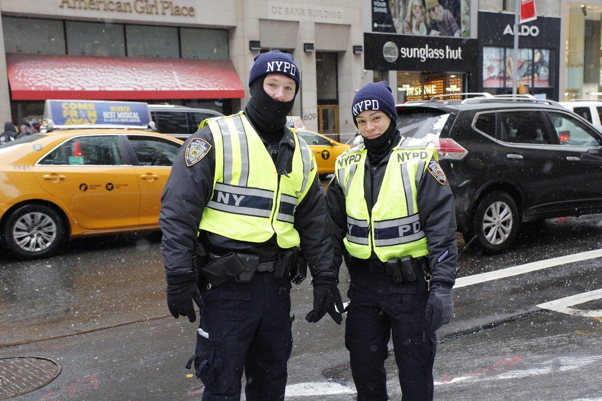 Instead of the traditional NYPD hats, officers were given the OK to sport a warmer option.