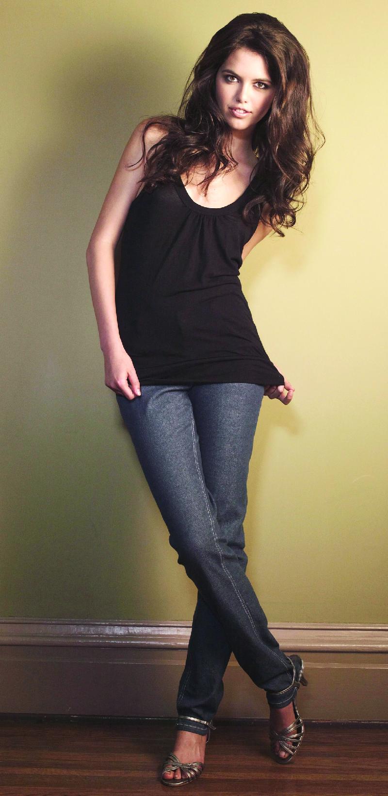 I love this top, plain and simple. It has a longer length and a banded bottom, which will hug wearers around the lower hip area while maintaining some movement around the waist and middle. The shape is on-trend and great for summer—and since skinny jeans are seem to be keeping their momentum, I can only imagine this means tapered capris will get some attention this season, as well. Bear in mind, though, it would probably go over better on a younger, more style-conscious crowd.