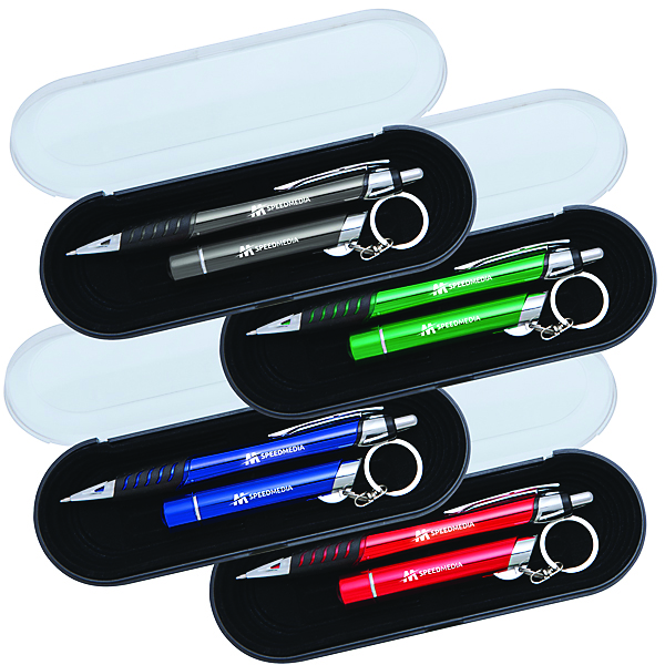 Luminate Techno Click Pen and Optic LED Keychain by ADG Promotional Products