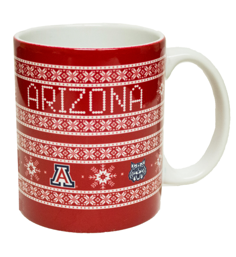 You can even replicate the ugly sweater look on coffee mugs, like the University of Arizona: