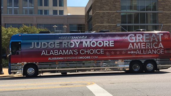 Advocacy group Great America Alliance sponsored a bus to bring Sarah Palin and former White House advisor Sebastian Gorka to a rally in support of former Alabama Chief Justice Roy Moore’s U.S. Senate run. The bus featured a URL for a website promoting the rally, alabamadeservesmoore.com. The only problem was, the website actually read alabamaderservesmoore.com.