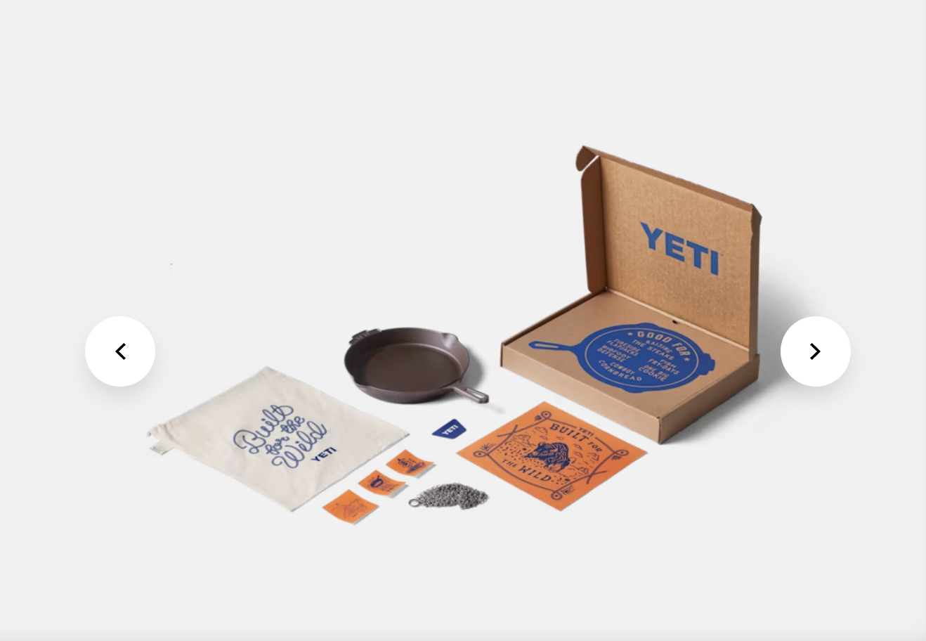 People who use cast iron pans know how much effort goes into taking care of them if you do it right. You have to clean them a certain way, you have to season them, you have to protect them. The YETI pan, created in collaboration with Butter Pat Industries in Maryland, comes pre-seasoned, and also comes complete with a branded cotton cinch top bag, a metal ring rag to scrape up debris, and a branded scraper card.