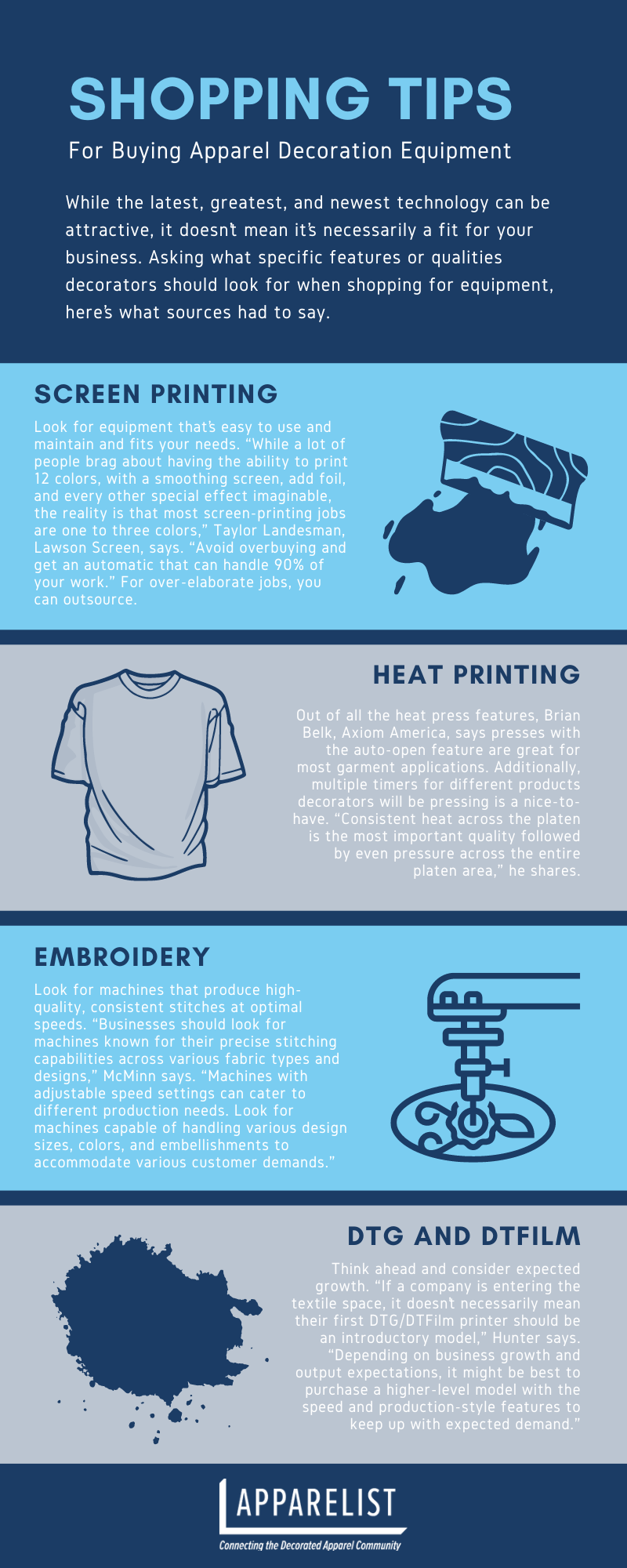 “There are a few times when an equipment investment simply makes sense,” Taylor Landesman, vice president at Lawson Screen & Digital Products, says of screen-printing equipment. “Being able to anticipate growth of a particular market is a great opportunity to get equipment, as it lets you get in early and establish yourself as a dependable decorator.”