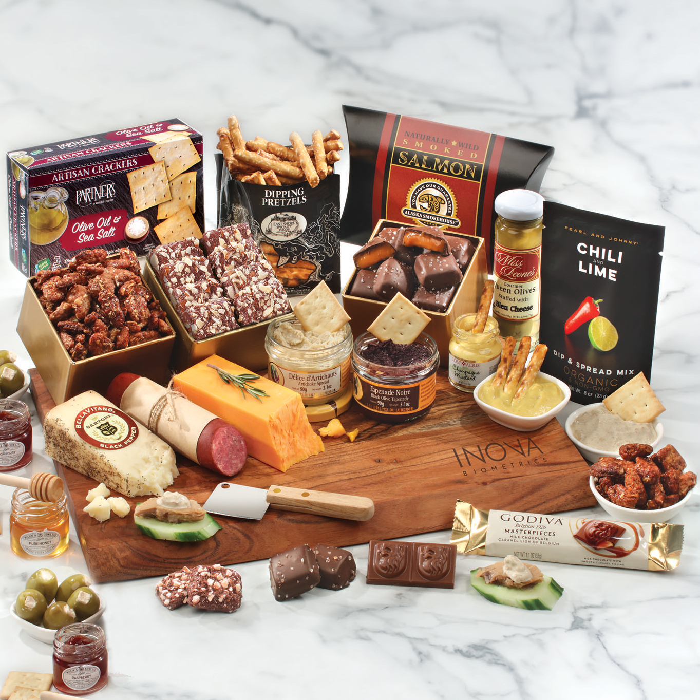 Sending a gift that features your company’s logo on the packaging adds a classy touch and shows that you put extra thought into gift selection. It also helps build your brand. If you are sending gifts to individuals, you may want to consider gifts that contain a branded item that will be retained long after the food has been enjoyed, such as a cutting board, desk accessory or collectible wooden truck.