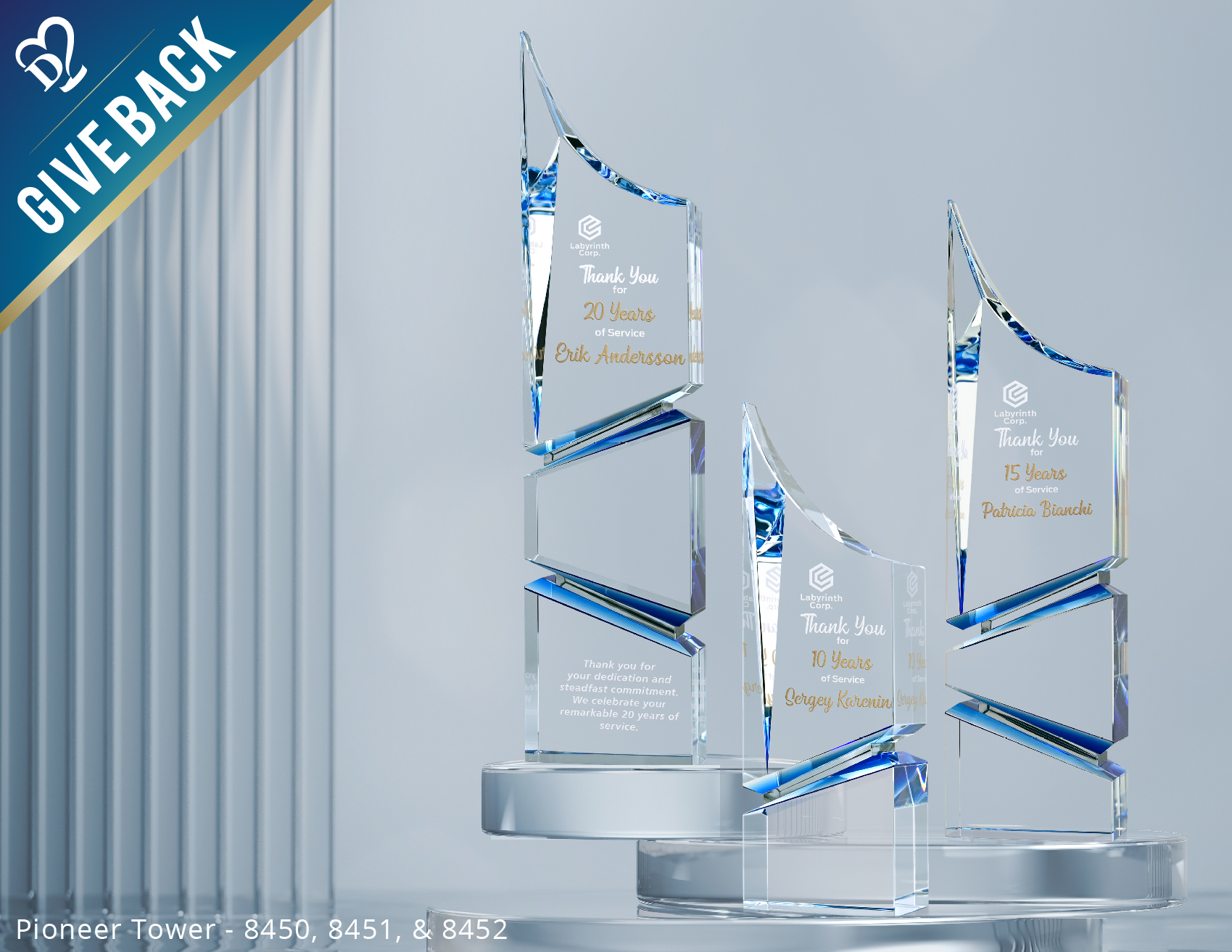 The launch of this program coincides with the launch of a new award gallery: the Legacy Gallery. Awards purchased from this gallery will have a portion of the proceeds donated to organizations that were near to founder Chuck Dahlgren’s heart. Chuck always said, “The ultimate purpose of life is to give,” and Crystal D’s new program allows the company to carry on Chuck’s legacy while donating to worthy causes.
