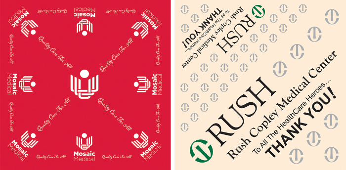 Across all industries, companies have been finding ways to show appreciation to employees for facing the challenges and obstacles during this unprecedented time. Bandannas for frontline workers will not only provide a small token of gratitude, but also allow employees of hospitals and doctor offices a way to show pride for their place of employment. And that display of the company name, logo and tagline can strengthen brand awareness for the entity. The branding can even be incorporated into a classic bandanna paisley design or a full color digital bandanna, giving companies the ability to include a more vibrant logo or team photo.