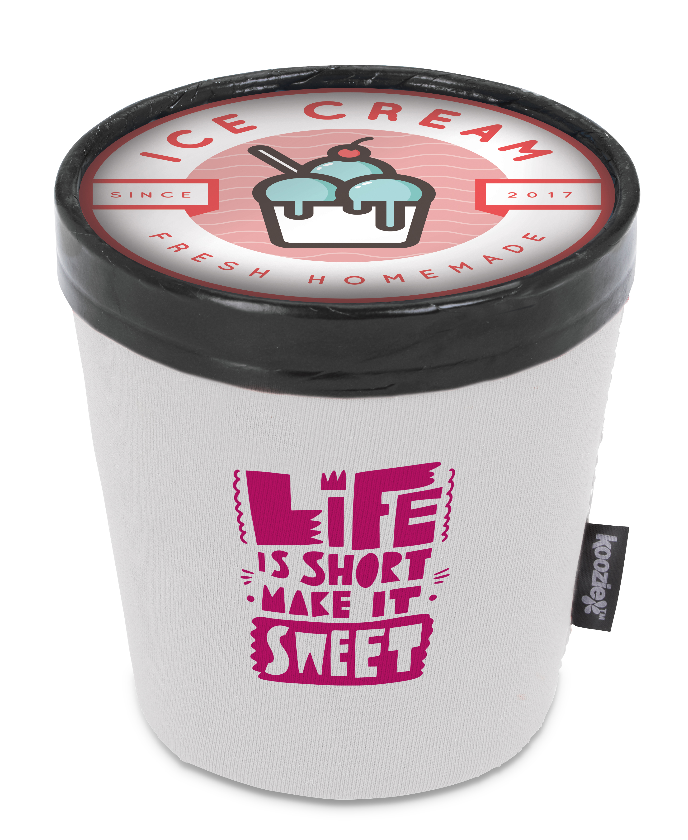 Time to indulge your sweet tooth? The Koozie® Ice Cream Kooler slows down the melt when you pick up a pint of creamy goodness at your local market or as you enjoy decadent spoonfuls on a hot summer day. Made from high-quality wetsuit-like material, it folds flat for easy storage in a drawer or glove compartment.