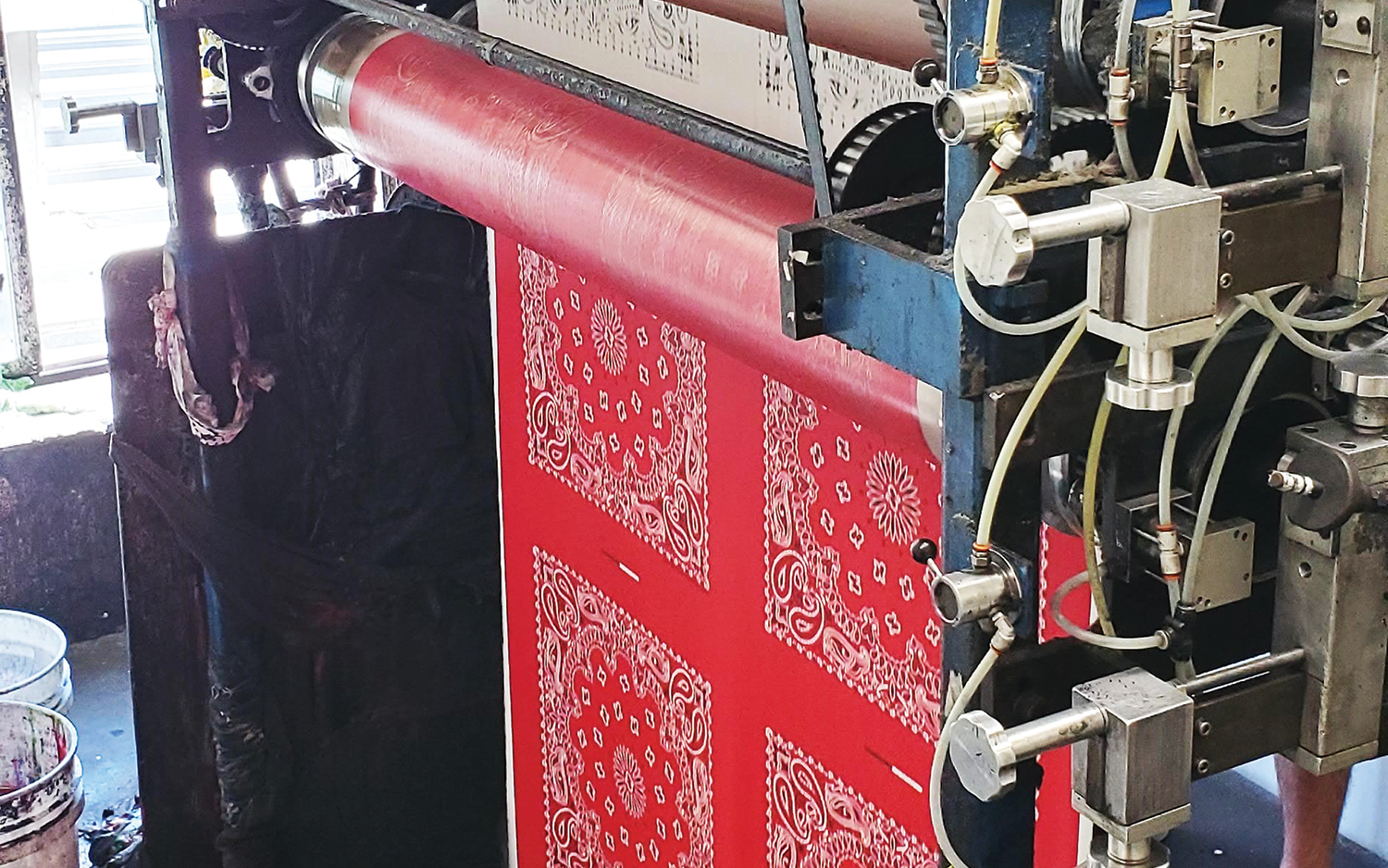 This versatile printing process involves printing an image directly from a computer-generated design file onto fabric substrates by way of a large-format inkjet printer. Custom Digital Bandannas are created starting with a white cloth before full-color graphics are printed on the front (the back is left solid white).